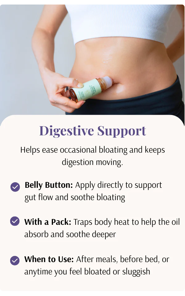 ✦ Belly Button: Massage in nightly to support digestion and the appearance of a flatter-looking belly.