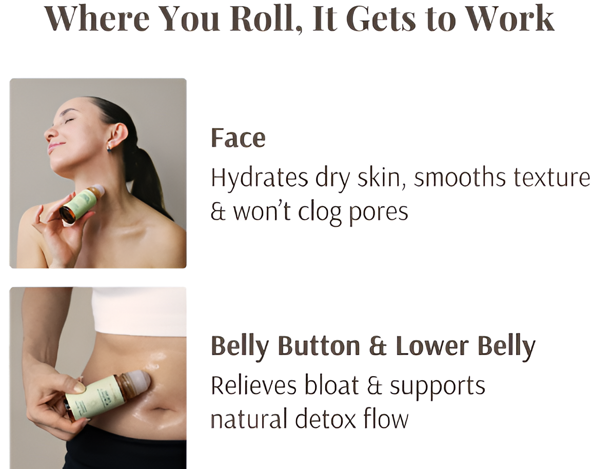 ✦ Face, Neck & Chest: Roll onto clean, damp skin to hydrate and smooth the look of fine lines.