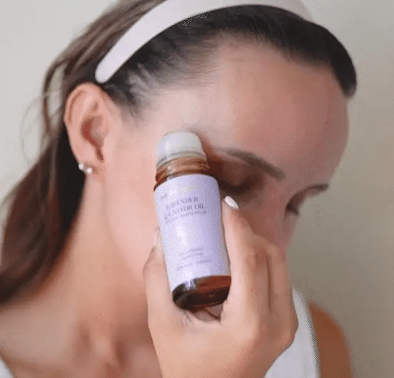 Glide across temples and neck. Feel the weight lift from your head and shoulders as your body settles into calm.